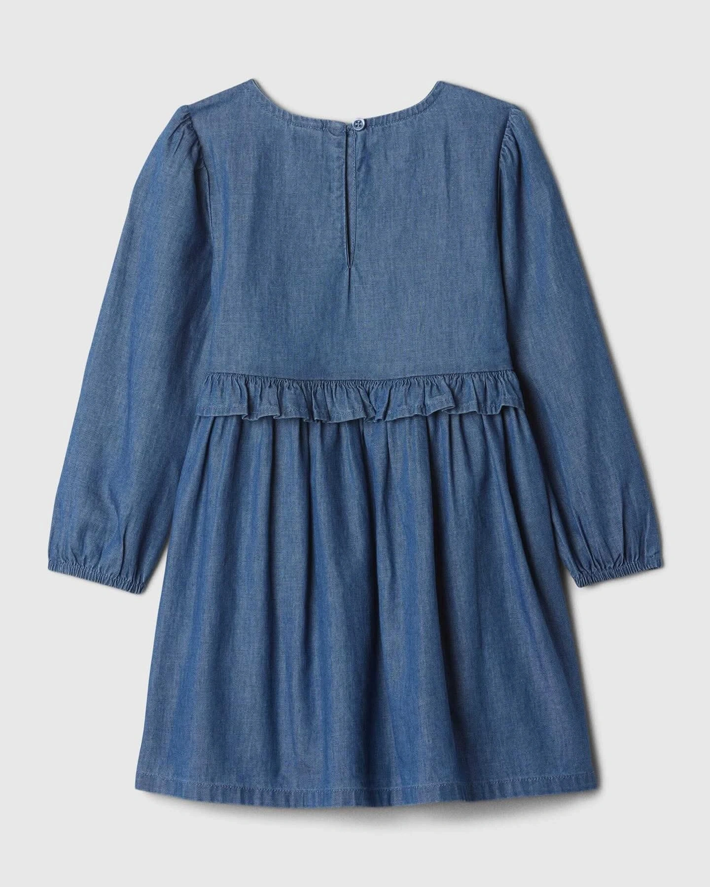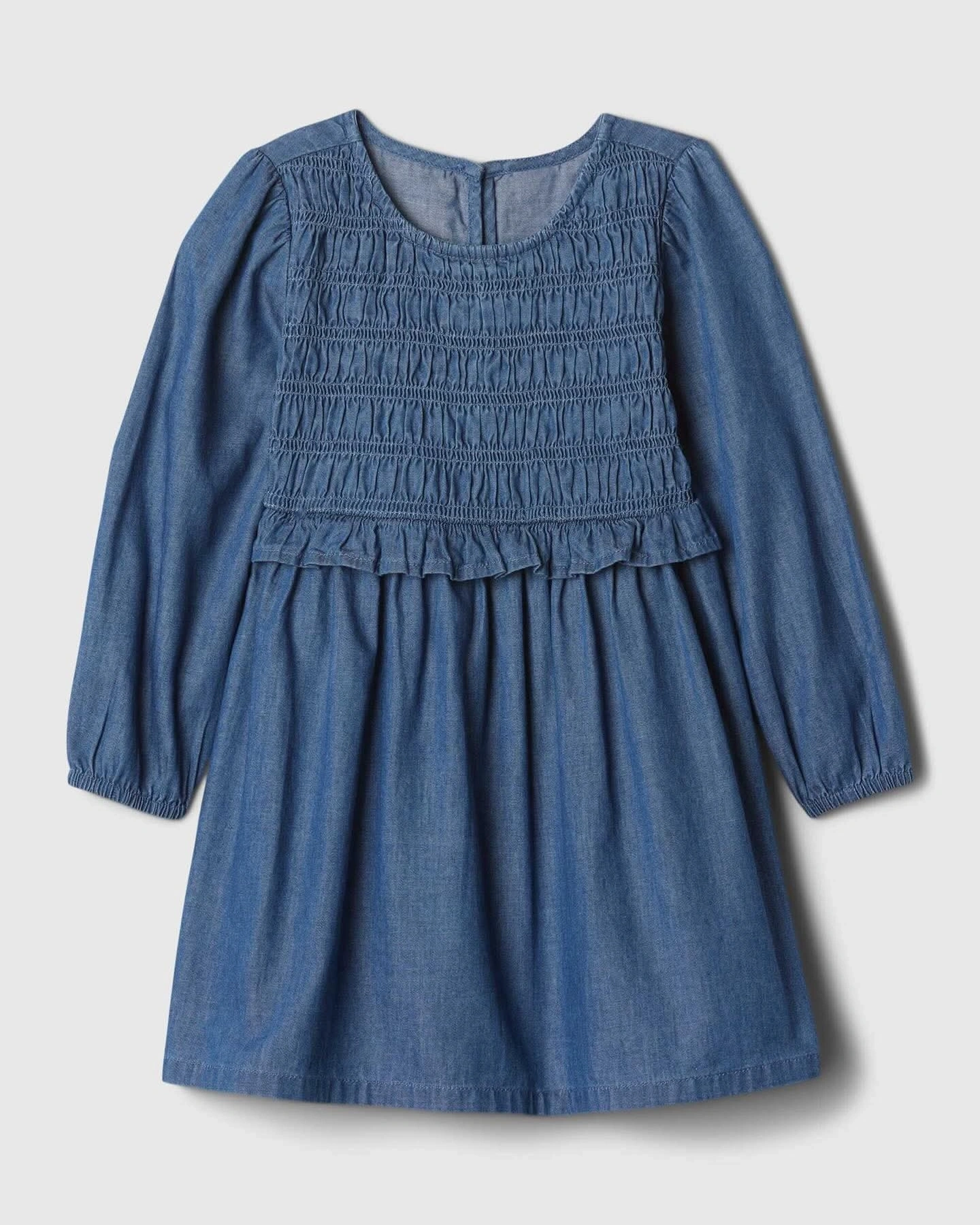 TURN UP THE CHARM WITH THE BABYGAP CHAMBARY SMOKED DRESS. WITH DEDICATE PUFF SLEEVES, A SMOCKED YOKE, AND A SOFT A-LINE SILHOUETTE, IT'S THE PERFECT BLEND OF CLASSIC STYLE AND BABY SOFTNESS.