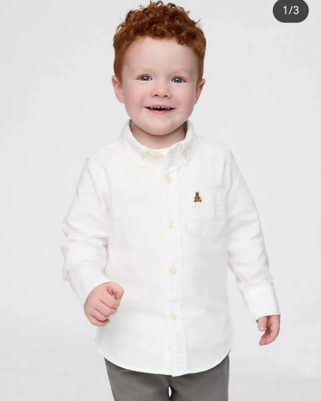 OUR ADORABLE BRANNAN BEAR EMBROIDERED OXFORD SHIRT IS THE PERFECT COMFY AND CONSCIOUS CHOICE FOR YOUR LITTLE ONE. MADE WITH SUPER-SOFT, IN-CONVERSION ORGANIC COTTON.