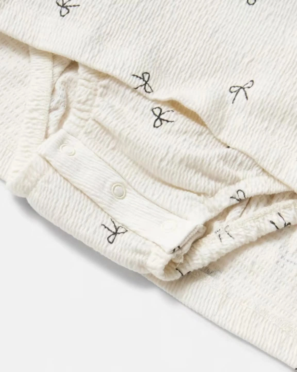 HANDY SNAP CROCTCH FOR EASY DIAPER CHANGES.