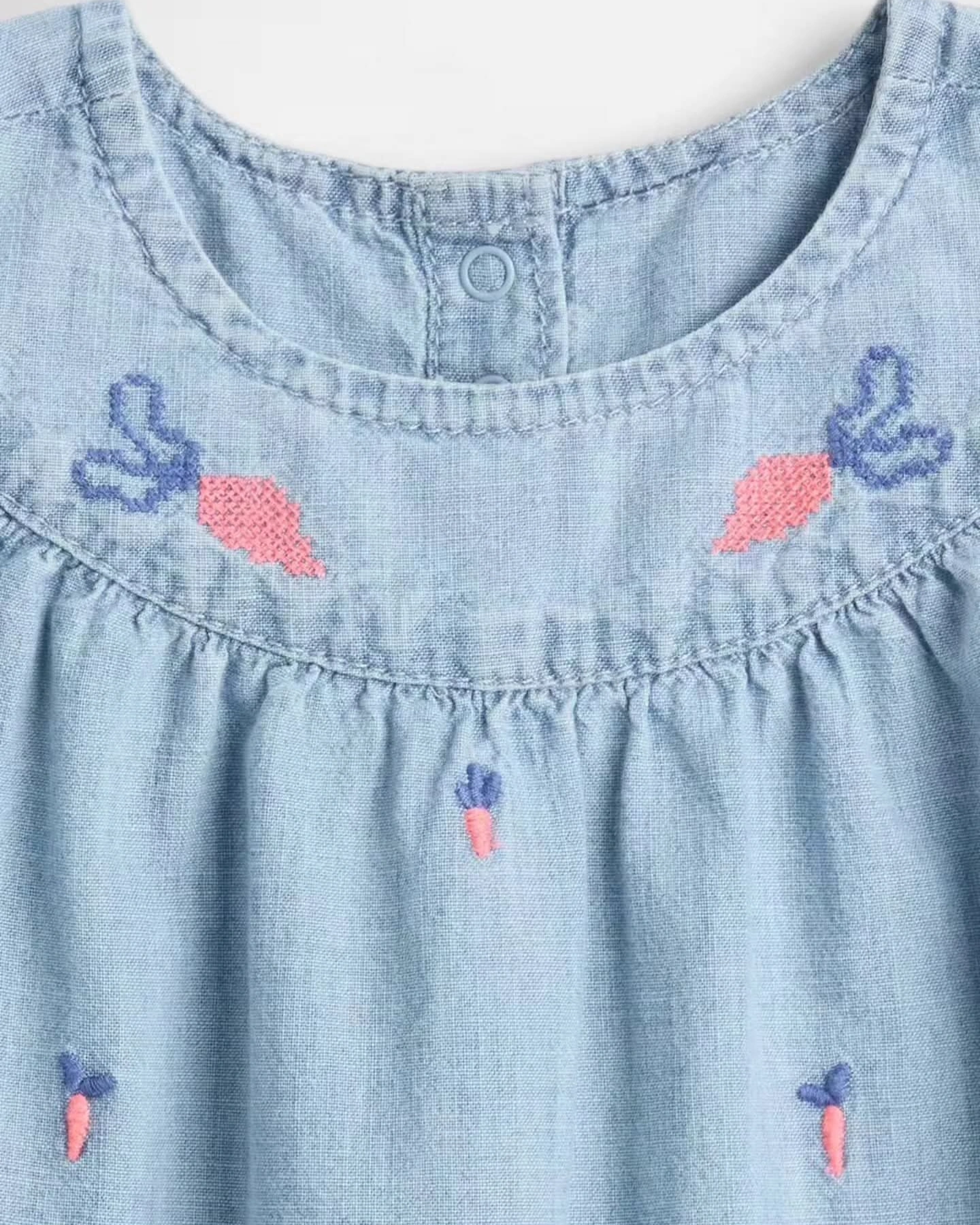 Crafted from soft, breathable chambray, this one-piece is ideal for playtime, naps and everything in between.