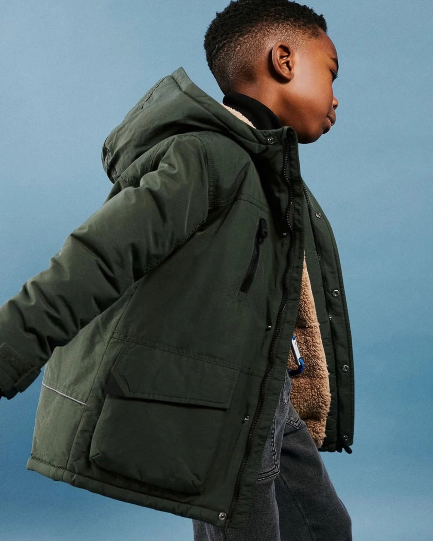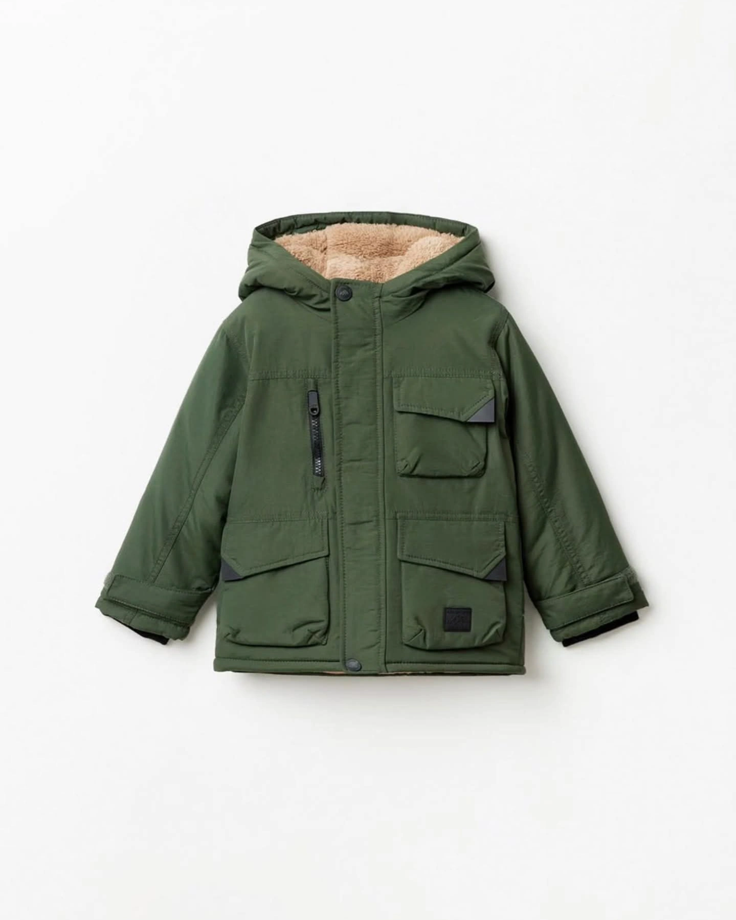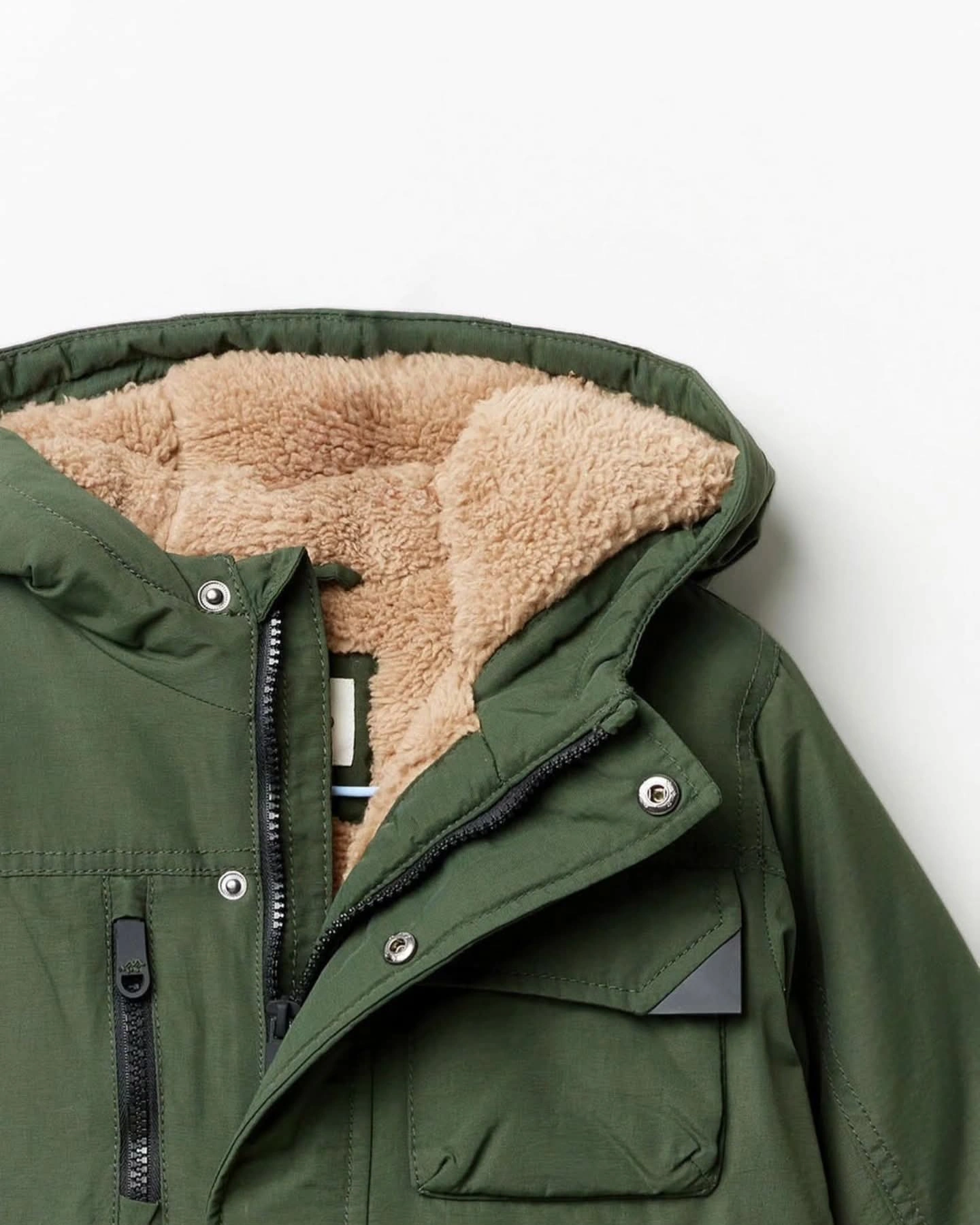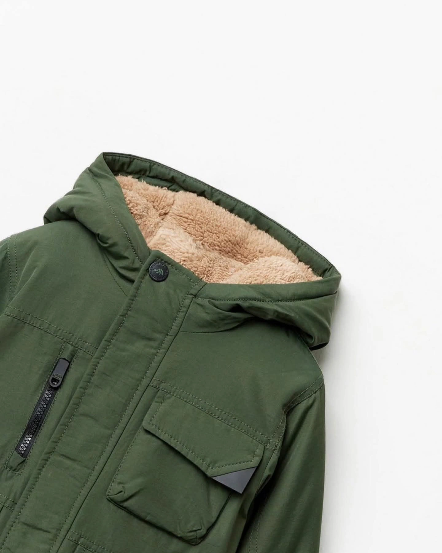 DON'T LET A LITTLE WEATHER RUIN THE FUN! POUR GREEN KHAKI HOODED PARKA IS THE ULTIMATE SIDEKICK FOR YOUR LITTLE ADVENTURER, BUILT FOR SCHOOL RUNS, PARK DATES, AND EVERYTHING -IN BETWEEEN.