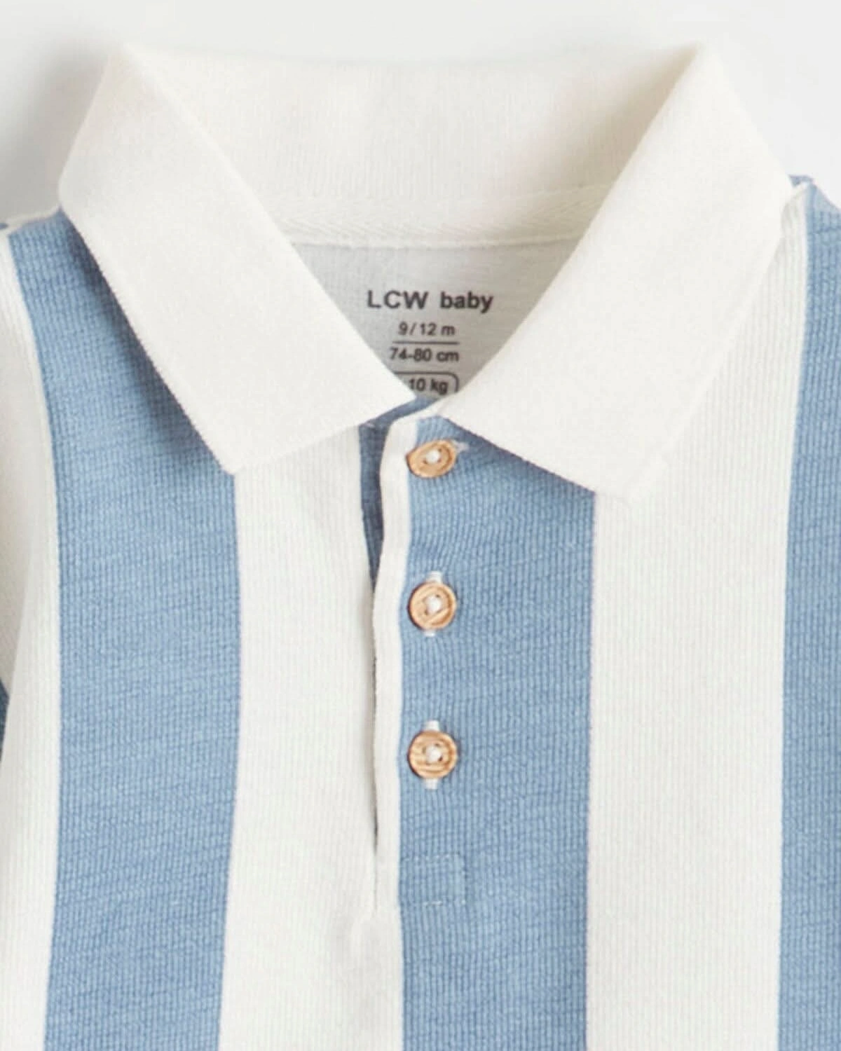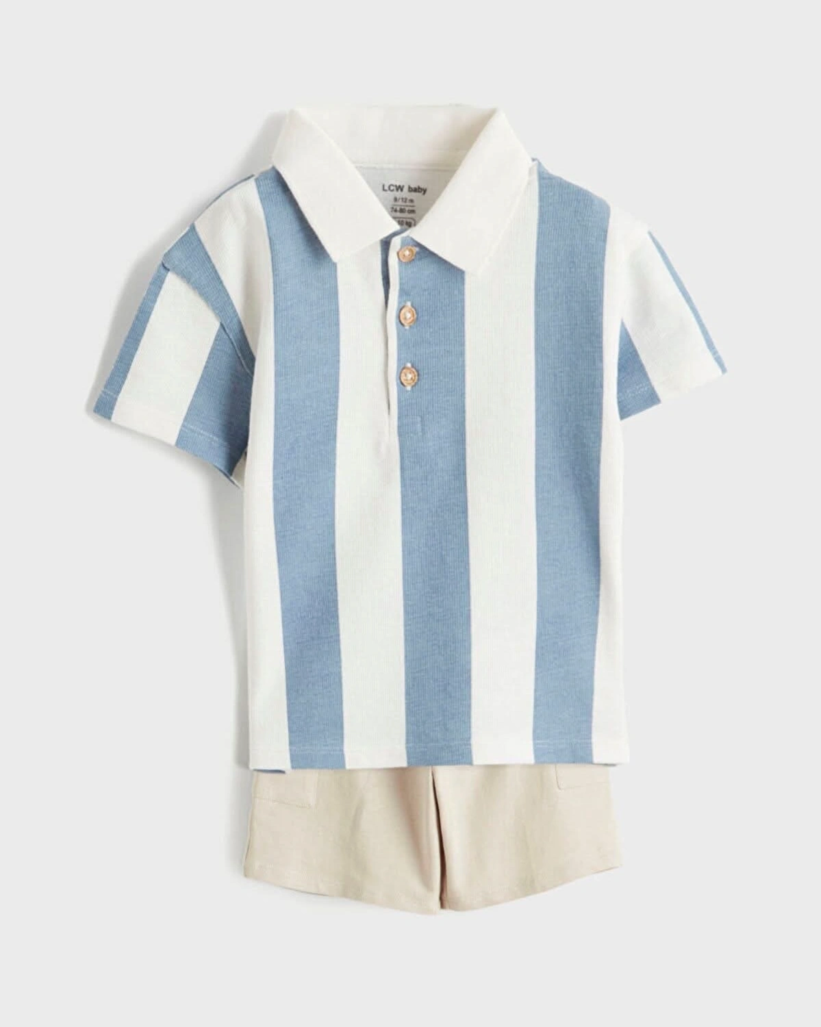 THE LC WAIKIKI OFF-WHITE STRIPED POLO & SHORTS SET IS MADE FOR YOUR BABY'S HAPPIEST DAYS-SOFT, BREATHABLE, AND TOTALLY CUTE.