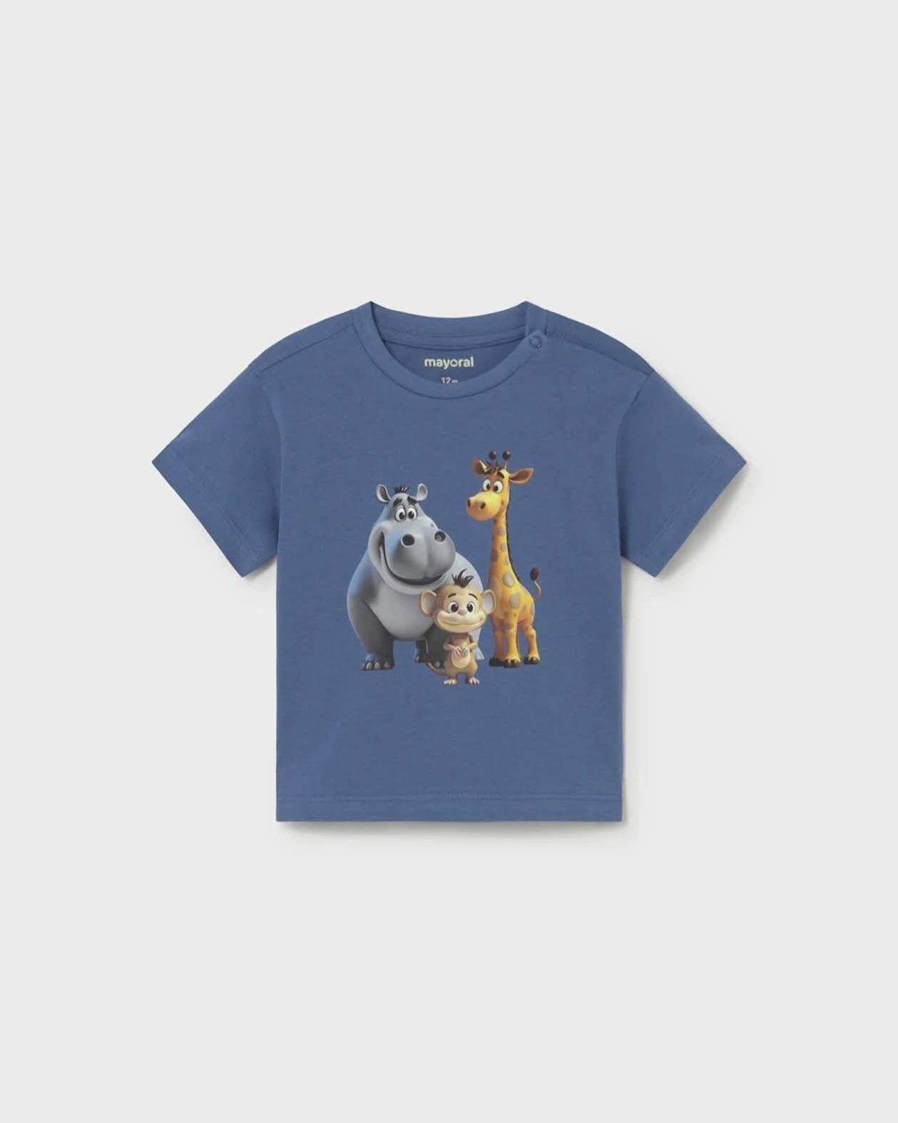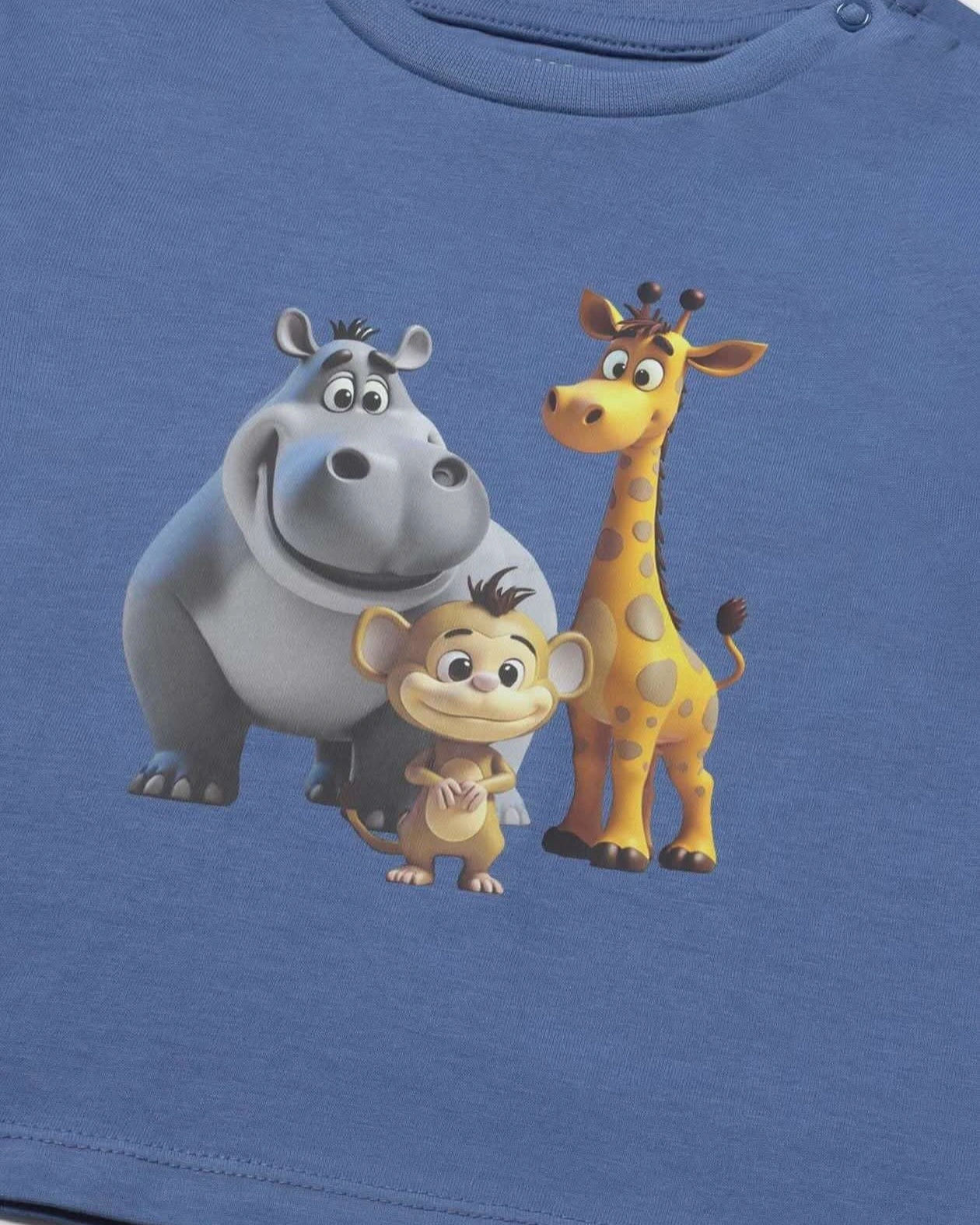 SPRUCE UP YOUR LITTLE ONE'S WARDROBE WITH OUR NEW ANIMALS T-SHIRT! SOFT 100% COTTON IN A VIRBANT COBALT BLUE-PERFECT FOR PLAYFUL DAYS.