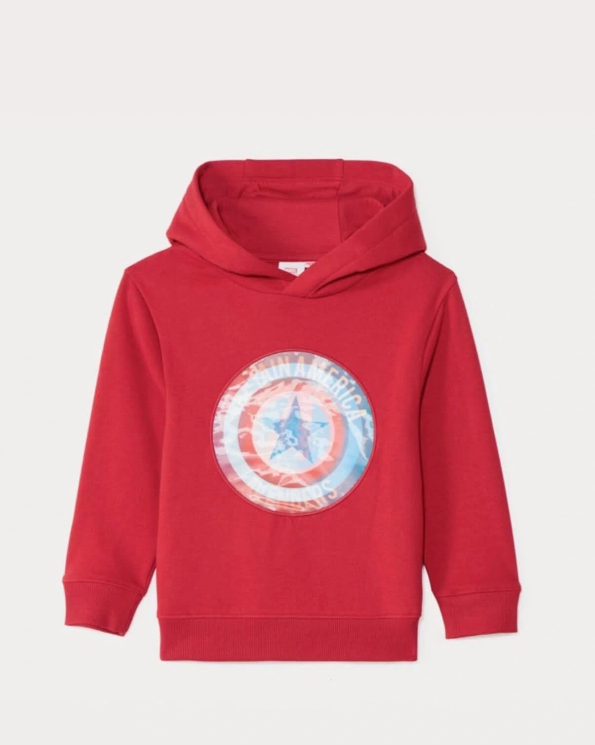 CALLING ALL MARVEL FANS! THIS CAPTAIN AMERICA LENTICULAR PRINT SWEATSHIRT IS HERE TO BRING SOME SUPERHERO MAGIC TO YOUR LITTLE ONE'S WARDROBE. WATCH THE DESIGN TRANSFORM FROM AVENGERS TO CAP WITH EVERY MOVE!