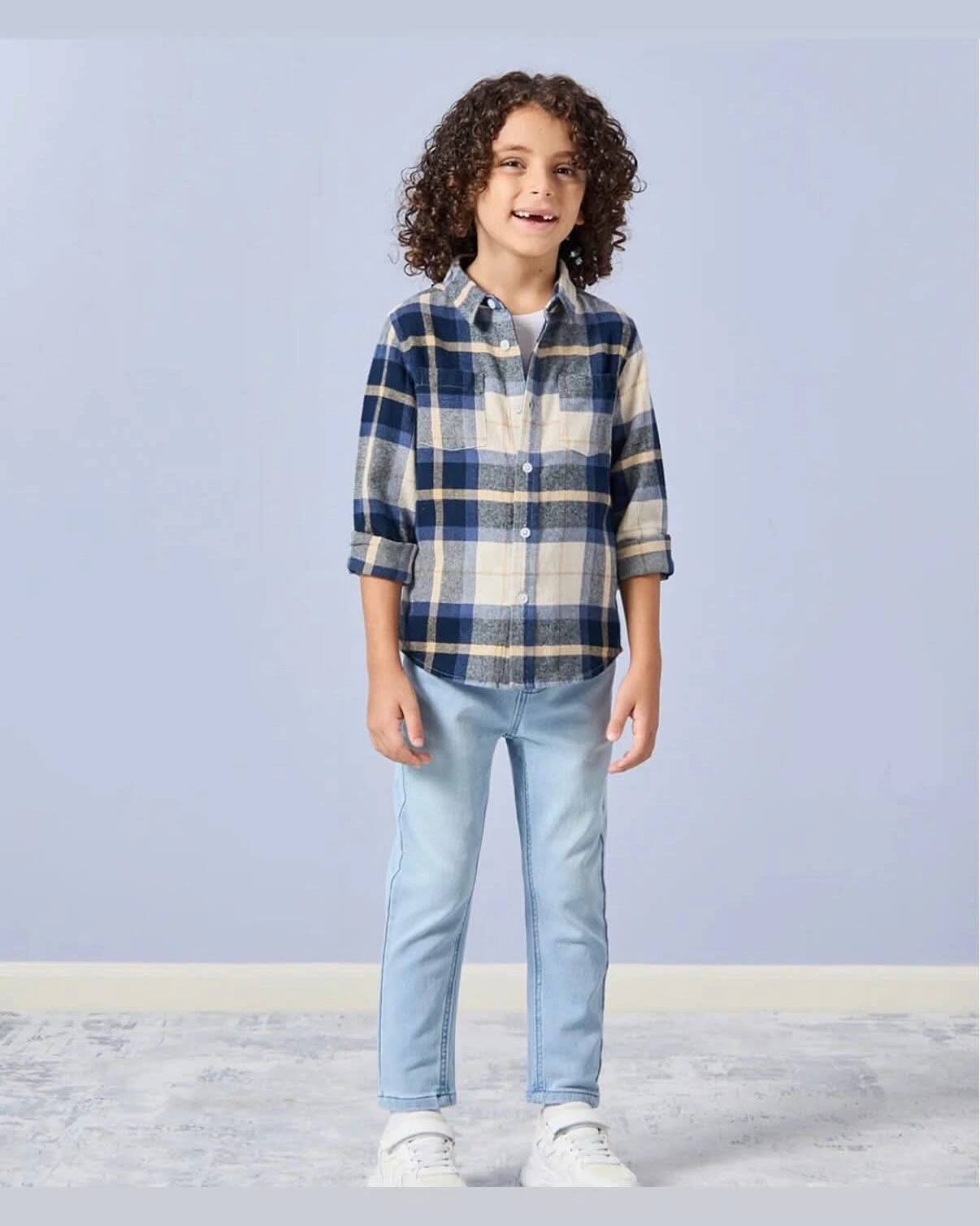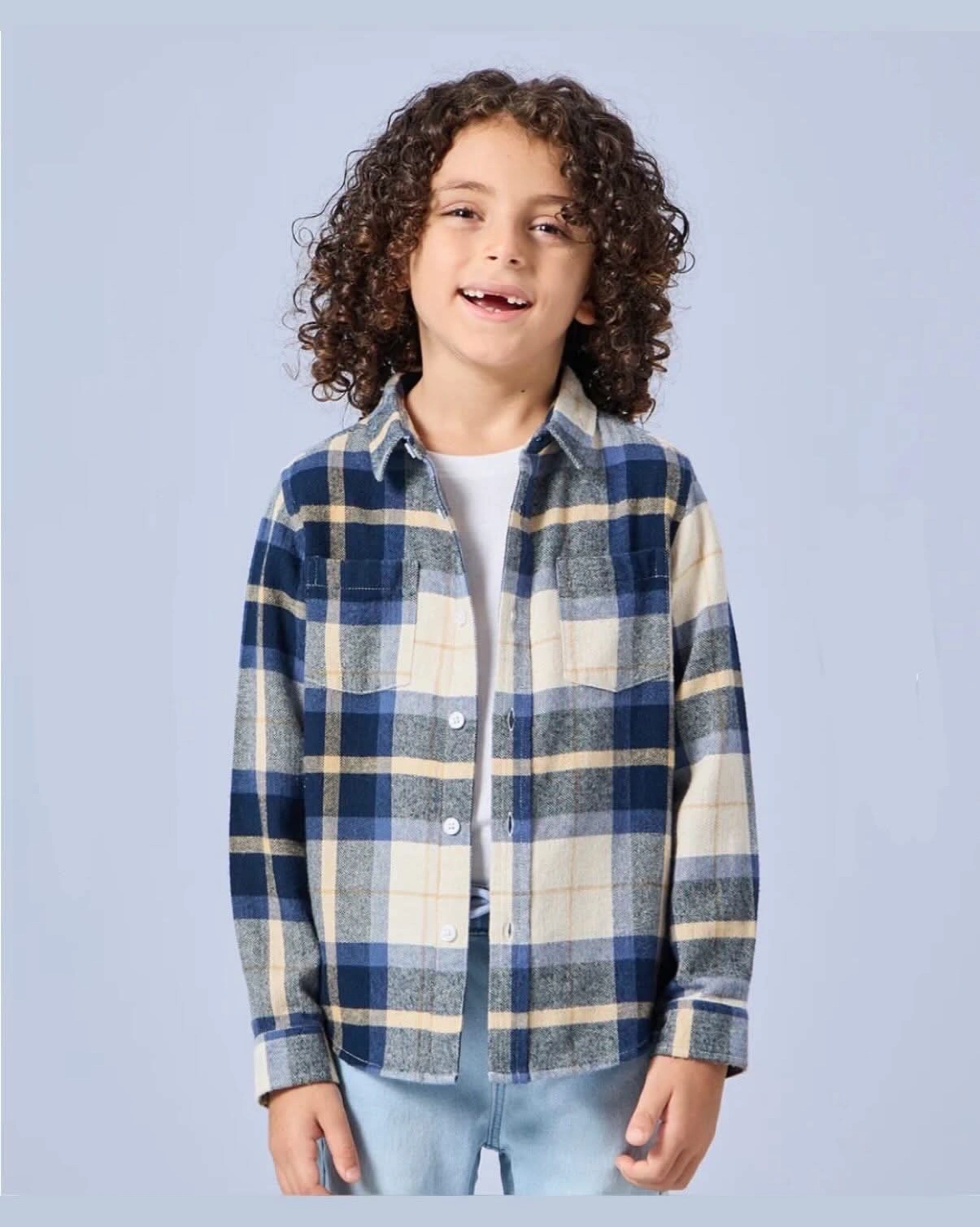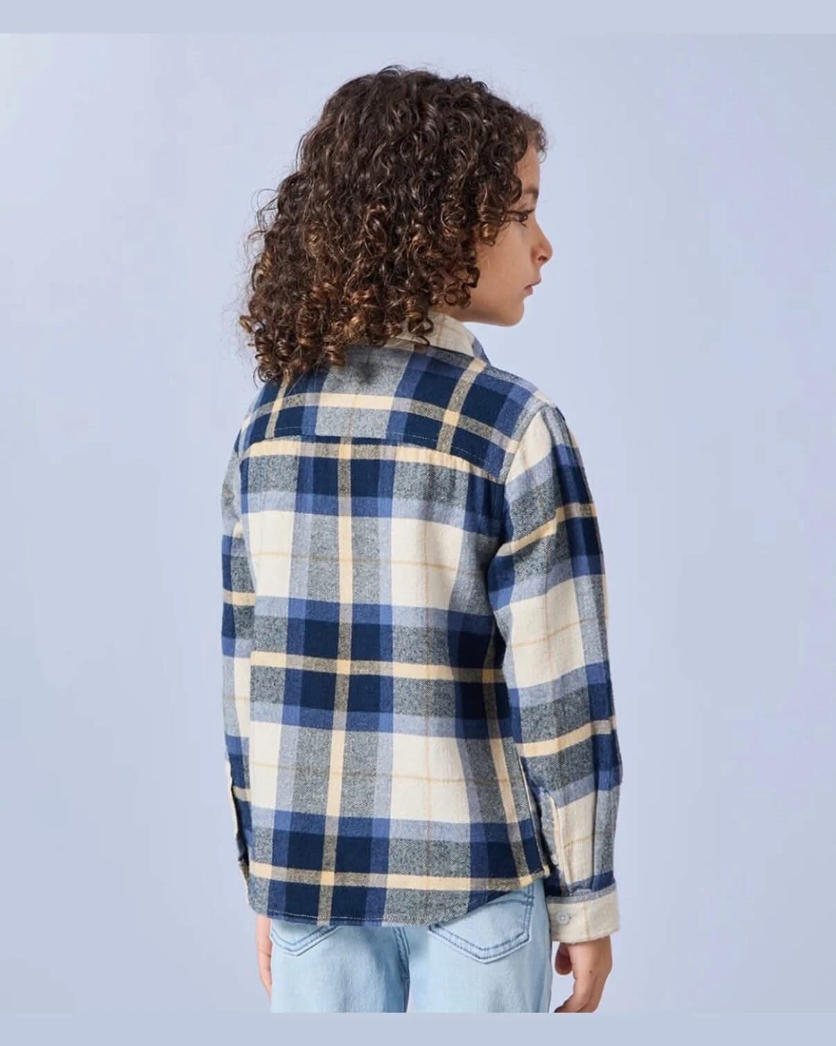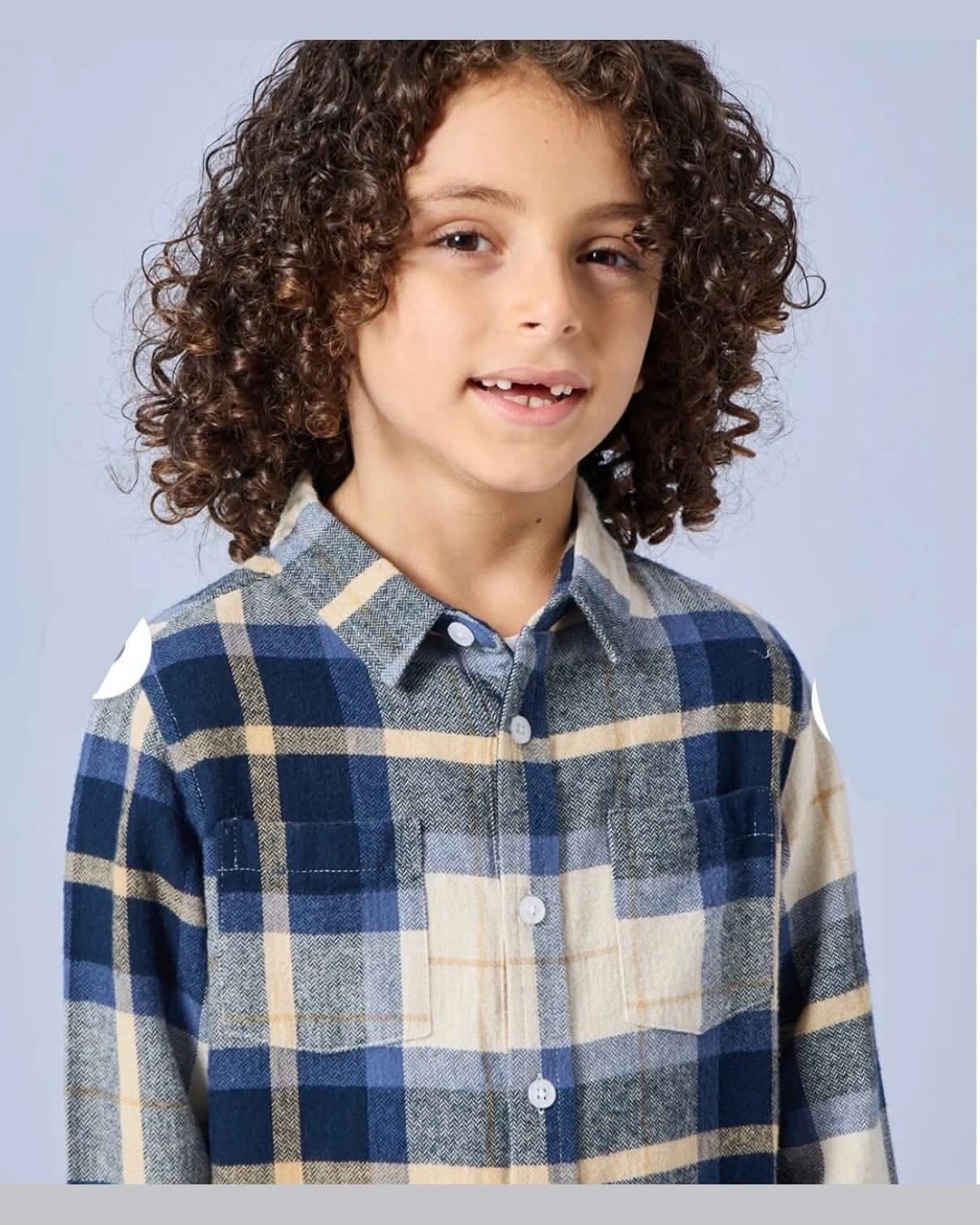 OUR BOYS NAVY CHECKED SHIRT IS HERE-- CRAFTED FROM 100% SOFT COTTON FOR LASTING COMFORT AND A TIMELESS OXFORD LOOK. PERFECT FOR FORMAL EVENTS OR ELEVATING STYLE.