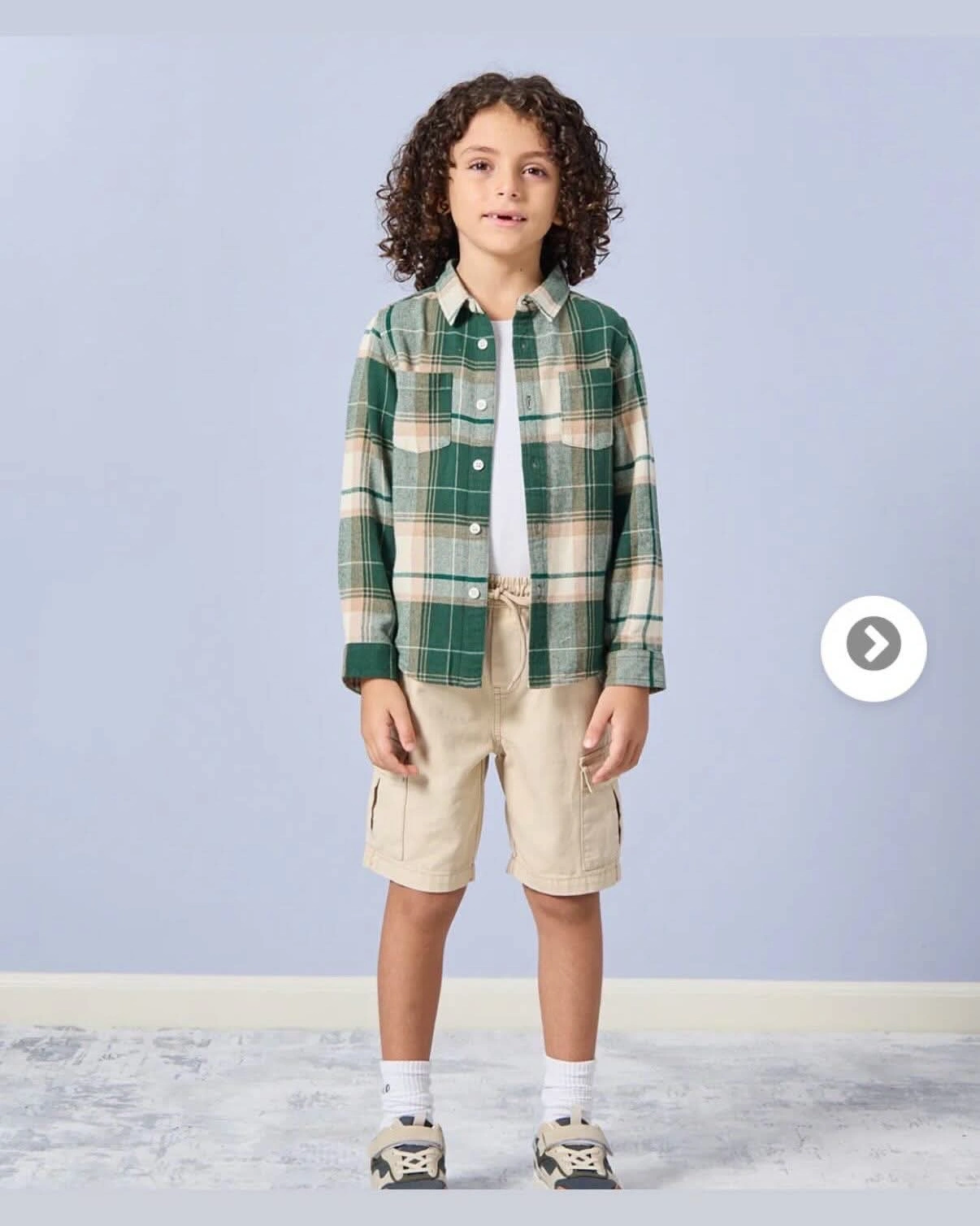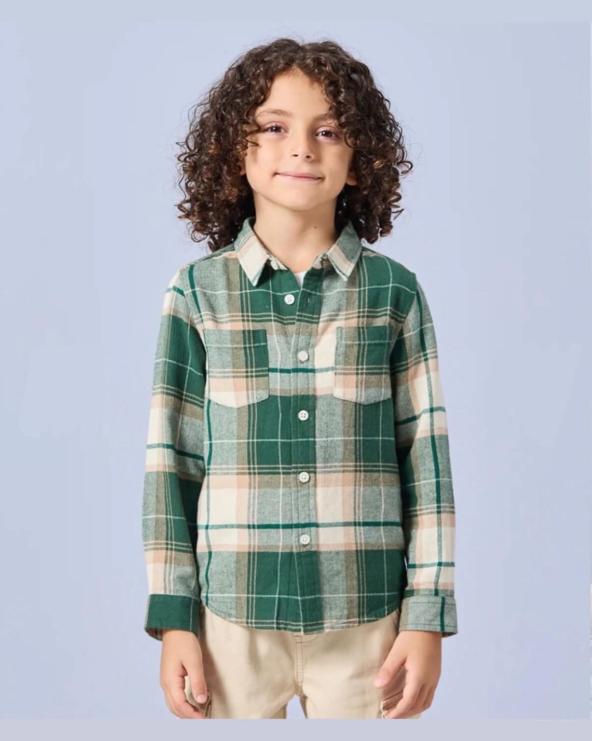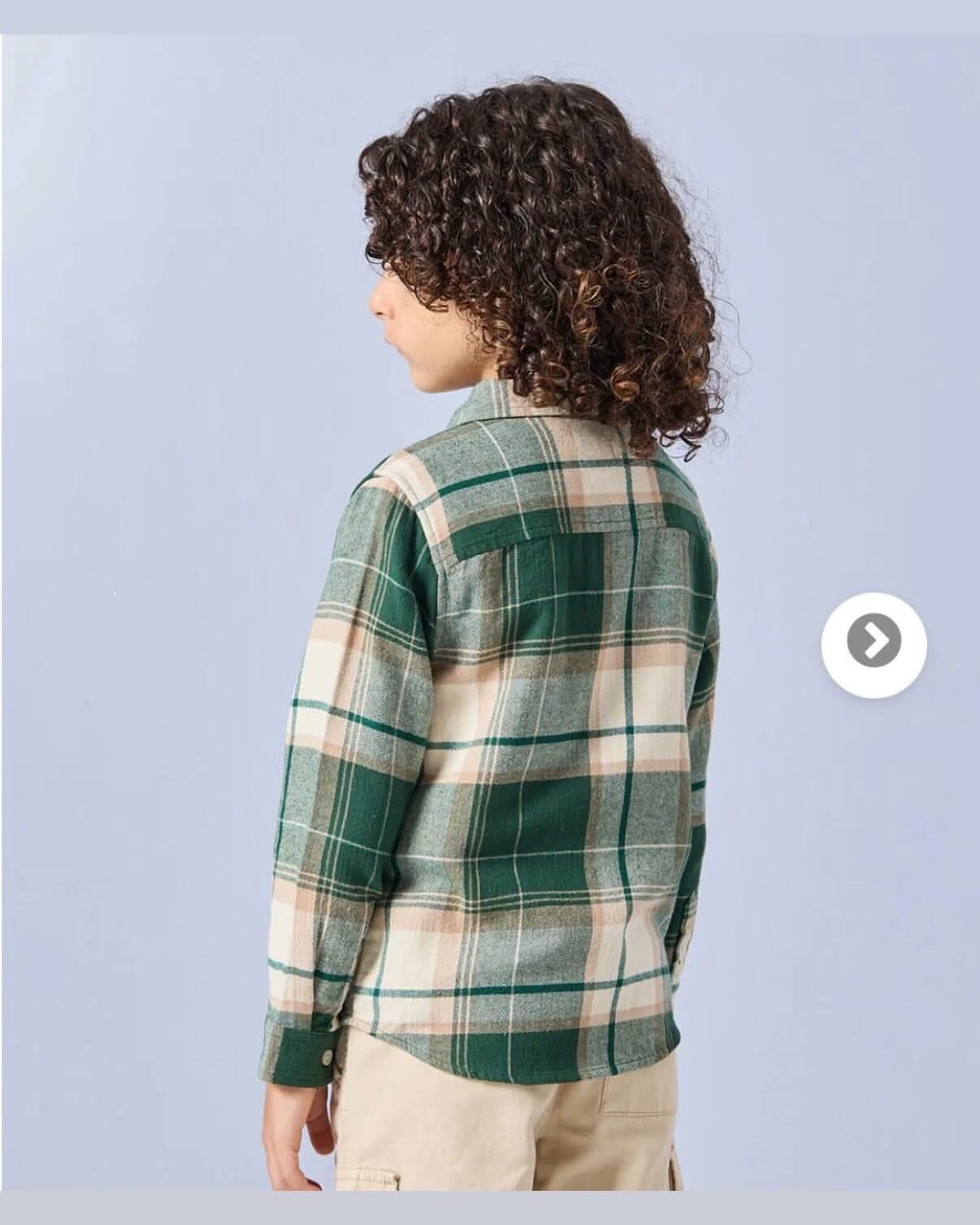 OUR BOYS GREEN CHECKED SHIRT IS HERE-- CRAFTED FROM 100% SOFT COTTON FOR LASTING COMFORT AND A TIMELESS OXFORD LOOK. PERFECT FOR FORMAL EVENTS OR ELEVATING STYLE.